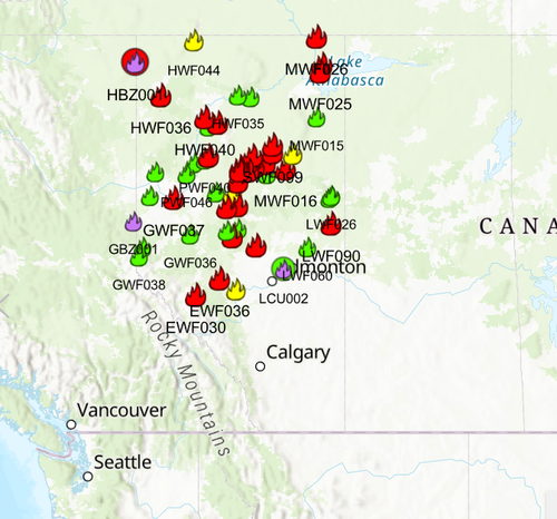 One of the 26 active wildfires is about 6 miles from 470k barrels bpd of oil sands production.