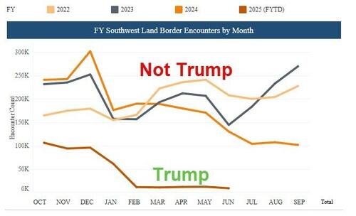 The Department of Homeland Security (DHS) said preliminary data from July 2025 show that for the third time this year, the agency set record lows for nationwide encounters and single-day border apprehensions.