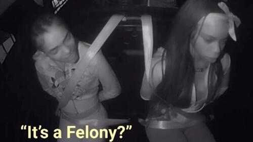 “It’s a felony?” one of the women asks the other in the back of the patrol car.