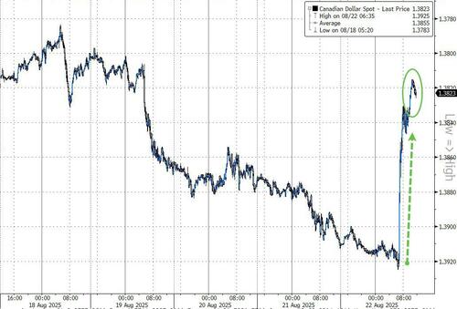 The Canadian dollar is strengthening notably against the US dollar today (helped by Powell’s words and Carney’s actions)…