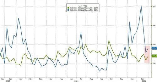 Initial jobless claims rose very marginally off near multi-decade lows last week (from 208k to 219k) and slightly higher than the 213k expected…