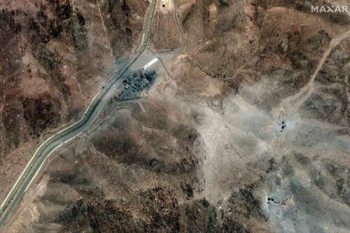 A satellite image taken the day after U.S. airstrikes shows damage at Iran’s Fordow enrichment facility on June 24, 2025. Maxar Technologies via AP