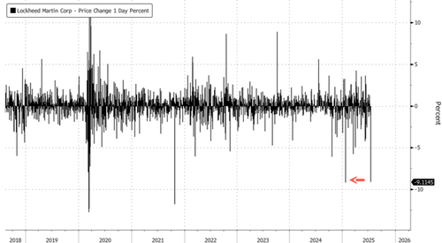 Lockheed reported a major miss, with operating profit plunging 65% to $748 million (vs. an estimated $2.15 billion) and revenue falling short at $18.16 billion. Shares slumped 9% by midday – the since the start of the year.