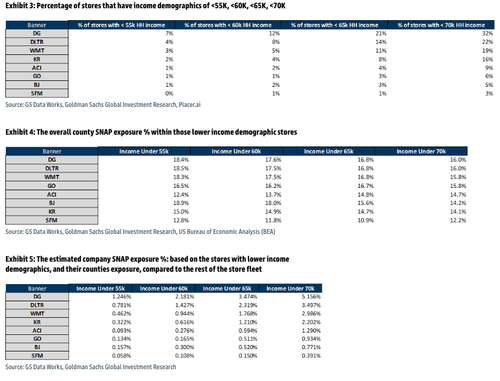 Goldman Sachs’ retail desk found that SNAP dependency across major retail chains is very alarming and clear, with Dollar General (DG) and Dollar Tree (DLTR) most exposed if SNAP reductions are seen.