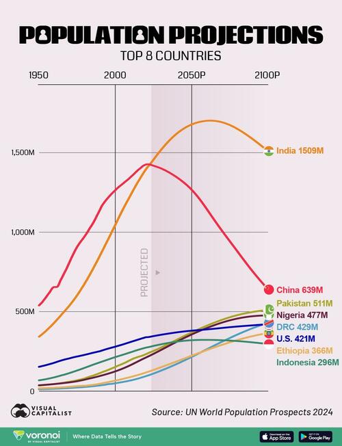 Using the latest data from the UN’s 2024 World Population Prospects, this infographic, via Visual Capitalist’s Marcus Lu, visualizes how the world’s most populous countries are expected to change by 2100.