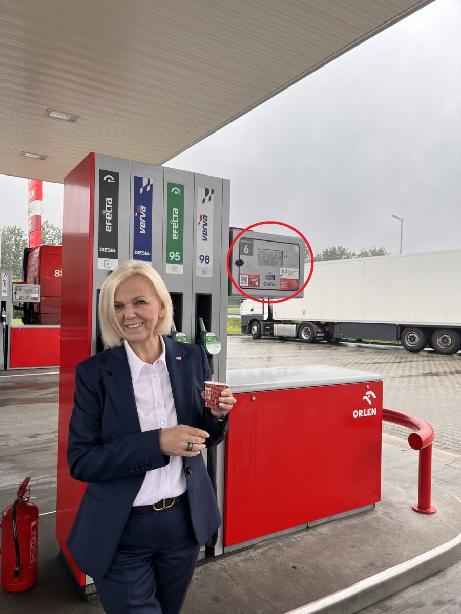 W sieci pojawiły się komentarze zwracające uwagę na dane umieszczone na dystrybutorze paliwa za plecami posłanki. Widoczne są informacje o zatankowaniu 491 litrów paliwa za kwotę 2 tysięcy 946 złotych.
