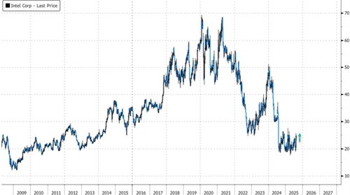 Bloomberg first reported the SoftBank deal to purchase $2 billion worth of Intel shares at $23 apiece. The news sent Intel up 6% in New York premarket trading, pushing shares into the $25 handle. Year-to-date, the stock is up 18% after bottoming near $20 – this is a level not seen since 2013. Shares last peaked above $64 in 2021.