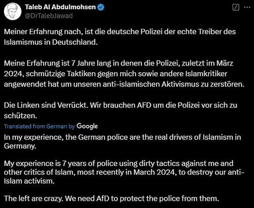 It’s a twist that is incredibly convenient for the current failing progressive government in Germany as they face a severe political backlash for their open border immigration policies and a rising tide of populism. The primary suspect in the Christmas Market terror attacks in Magdeburg, a doctor and refugee from Saudi Arabia, is allegedly also a supporter of the right-wing AfD party, Tommy Robinson, Elon Musk and Alex Jones according to authorities.