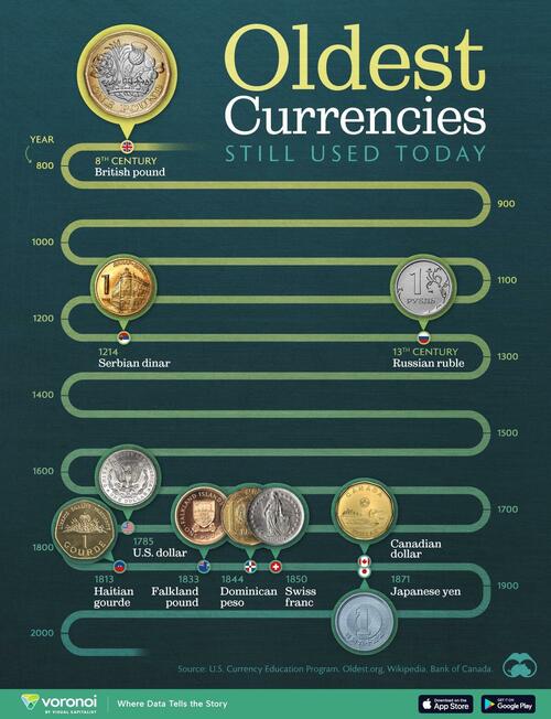 In this graphic, Visual Capitalist’s Bruno Venditti highlights the 10 oldest currencies still traded today, according to various online sources.