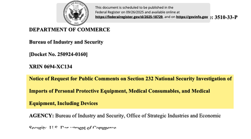On Wednesday, the Department of Commerce confirmed that it had initiated a national security investigation into „Imports of Personal Protective Equipment, Medical Consumables, and Medical Equipment, Including Devices” under Section 232 of the Trade Expansion Act on September 2. The filing was published in the Federal Register.
