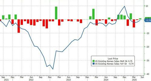 Existing home sales in the US rose by a modest 0.75% MoM in May (better than the -1.3% MoM expected), but remain down 0.75% YoY…