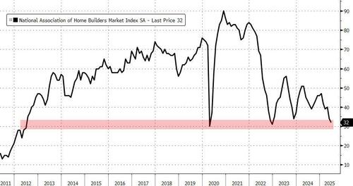 A gauge of market conditions from the NAHB slipped 2 points to 32 this month (well below the 36 exp), back near 13 year lows…