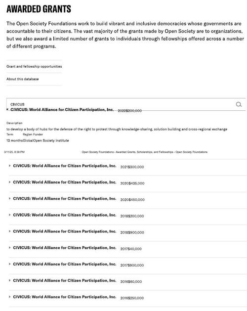 CIVICUS is a nonprofit that received more than $3.5 million in donations from George Soros’s Open Society Foundations from 2016 to 2021, according to a Headline USA review of a grants database.