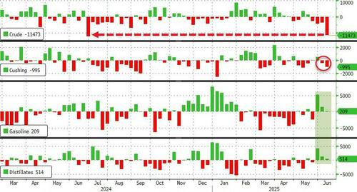 The offoicial data confirmed API’s with a huge crude drawdown (the biggest since June 2024). We also saw a third straight week of product builds…